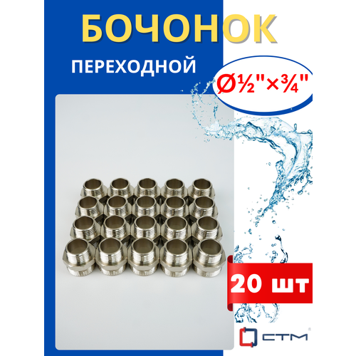 Бочонок (ниппель) латунный 1/2х3/4 переходной (СТМ) 20шт.