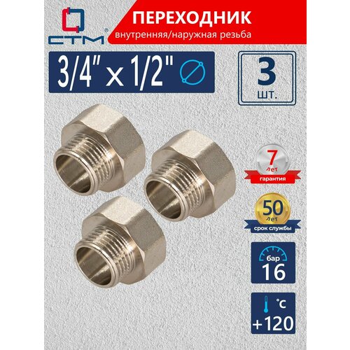 Переходник для трубы 3/4"х1/2" внутренняя-наружная резьба CTM (3 шт.)