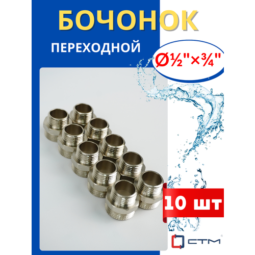 Бочонок (ниппель) латунный 1/2х3/4 переходной (СТМ) 10шт.