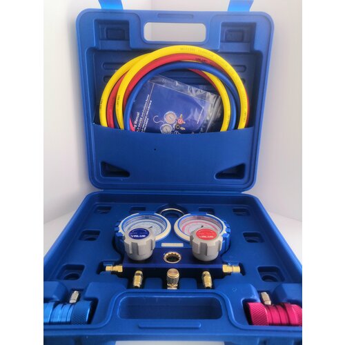 Манометрический коллектор Value VMG-2-R410A-03 (R22, R134a, R410a, R407C; 2-х вентильный; 3 шланга 120 см; манометры 80 мм; упак. блистер)