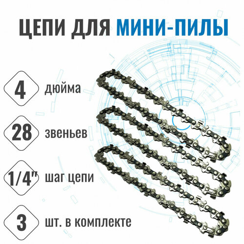 Цепи пильные ProСraft L.1/4.28 (на шину 4", комплект 3 шт.)
