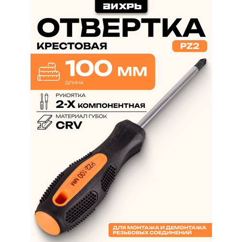 Отвёртка крестовая PZ2, 100 мм Вихрь