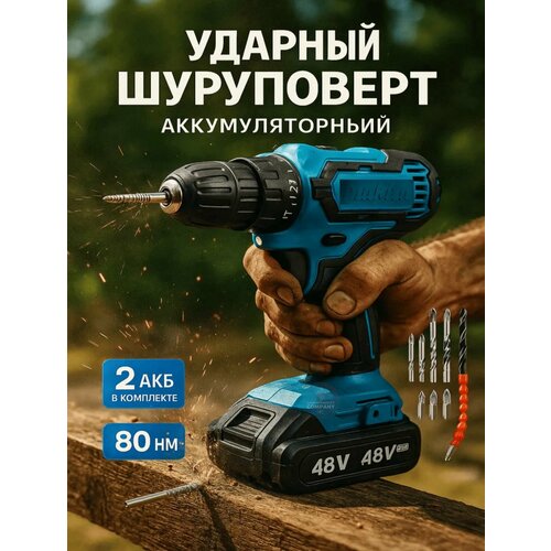 Шуруповерт аккумуляторный, дрель-шуруповерт, набор инструментов в кейсе