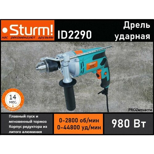 Дрель ударная Sturm! ID2290 (980Вт, ОЗП-13 мм, металлический редуктор, коробка)
