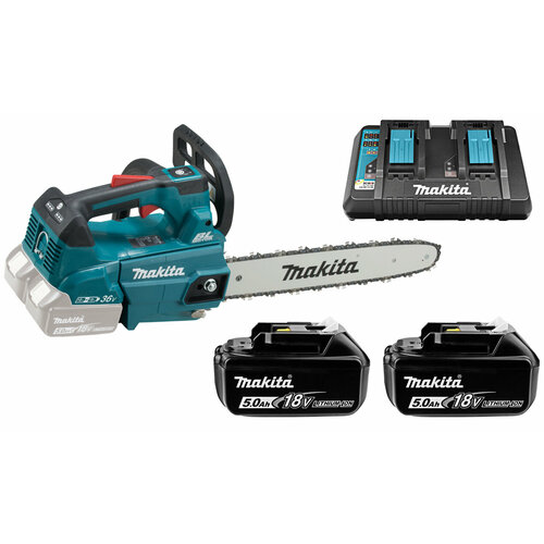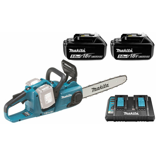 Набор Makita: аккумуляторная цепная пила DUC356Z + 2 аккумулятора 5 Ач BL1850B + зарядное устройство DC18RD, PT965
