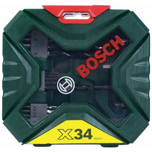 Набор оснастки, 5 сверл по дереву, 5 по камню, 5 по металлу, 13 бит, BOSCH X-LINE-34 2607010608