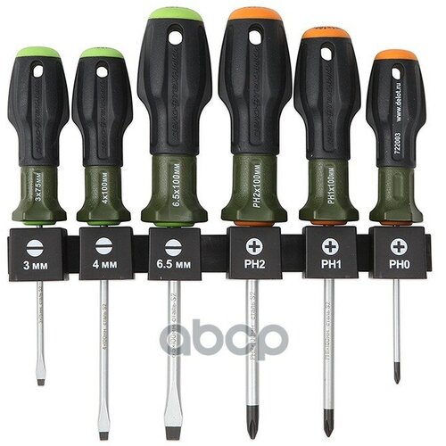 Набор Отвёрток C Трехкомпонентными Рукоятками (3?75,4?100,6,5?100, Ph0?75, Ph1?100, Ph2?100 Мм) 6 Штук Дело Техники Арт. 728061 .