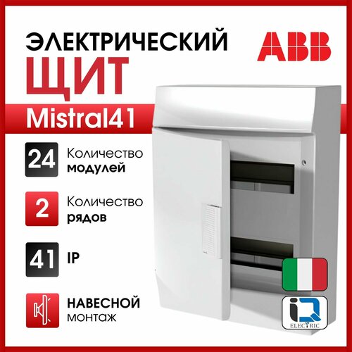 Настенный бокс ABB mistral41 24 модуля, непрозрачная дверь, с клеммами, 1SLM004102A3105
