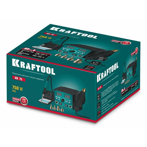 KRAFTOOL KR-75, 2-в-1 100-480°С 750 Вт, Ремонтная паяльная станция (55340)