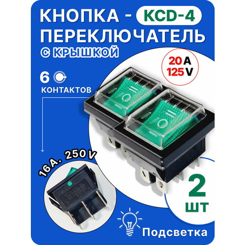 Кнопка КСД4(6контактов), пластик, с крышкой, с подсветкой, зеленая, 2 шт