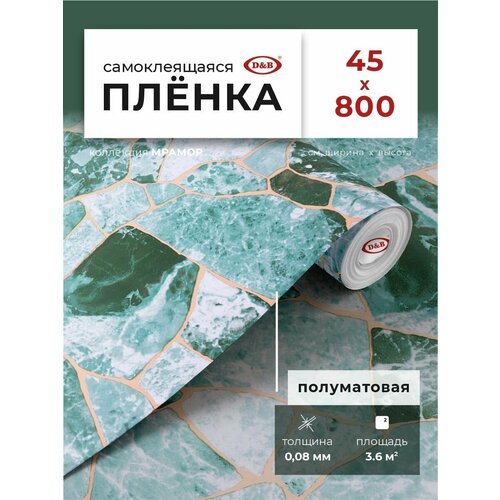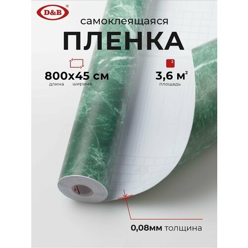 Пленка самоклеящаяся для мебели водостойкая моющаяся Мрамор Изумруд, D&B, 0,45*8м