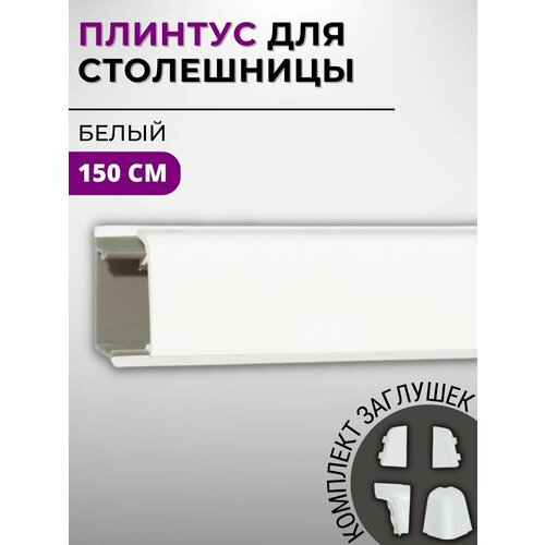 Плинтус кухонный для столешницы пластиковый овальный джокер 1101 белый, 1,5 м, с комплектом заглушек