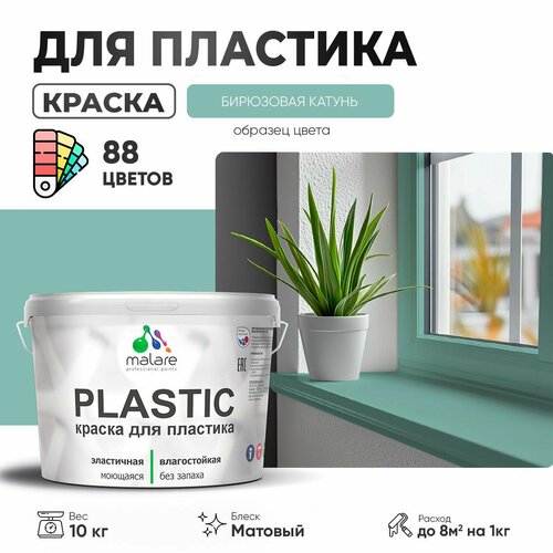 Краска акриловая (АК) Malare PlastiC моющаяся матовая бирюзовая катунь 10 кг