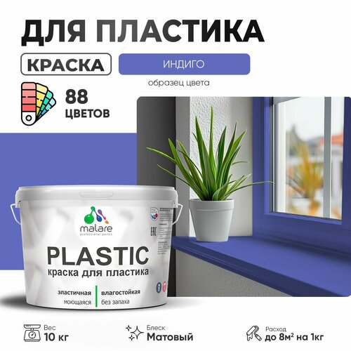 Краска акриловая (АК) Malare PlastiC моющаяся матовая индиго 10 кг