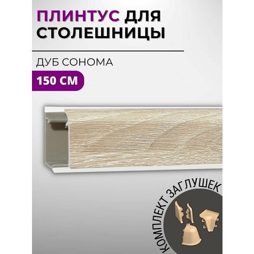 Плинтус кухонный для столешницы пластиковый овальный джокер 3230 дуб сонома светлый, 1,5 м, с комплектом заглушек