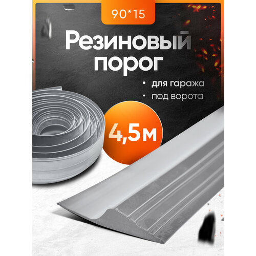 Резиновый порог для гаража под ворота 90х15, уплотнительная лента на пол, 4.5м