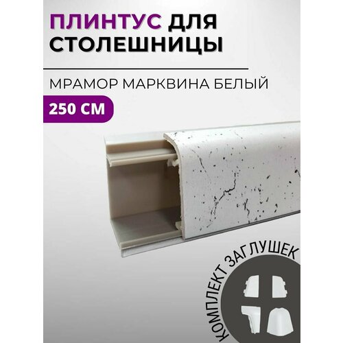 Плинтус кухонный для столешницы пластиковый овальный джокер 3028 мрамор марквина, 2,5 м, с комплектом заглушек