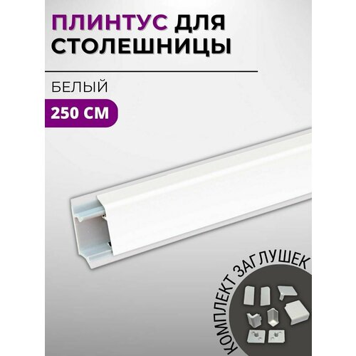 Плинтус кухонный для столешницы алюминиевый прямоугольный квадро-б белый, 1,5 м, с комплектом заглушек