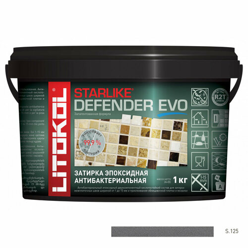 Затирка эпоксидная LITOCHROM STARLIKE Defender Evo S.125 антибактериальная, серая, 1 кг