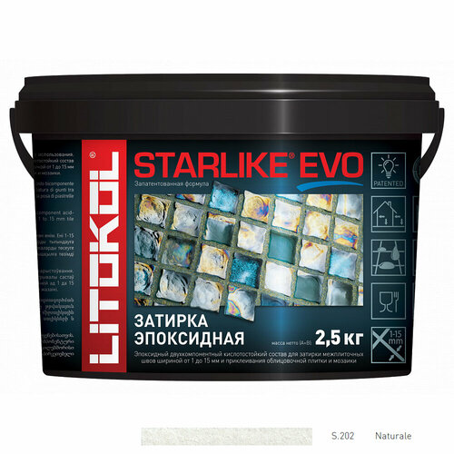 Затирка эпоксидная LITOCHROM STARLIKE EVO S.202 NATURALE белая, 2,5 кг: