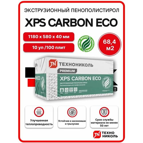 Технониколь XPS CARBON ECO 40 мм (10 уп / 68,4 м2/ 100 плит) Утеплитель из пенополистирола для стен, крыши, пола