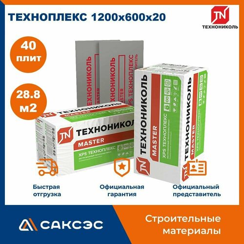 Экструдированный пенополистирол (эппс, XPS) Технониколь техноплекс 1200х600х20, 40 плит, 28.8 м2