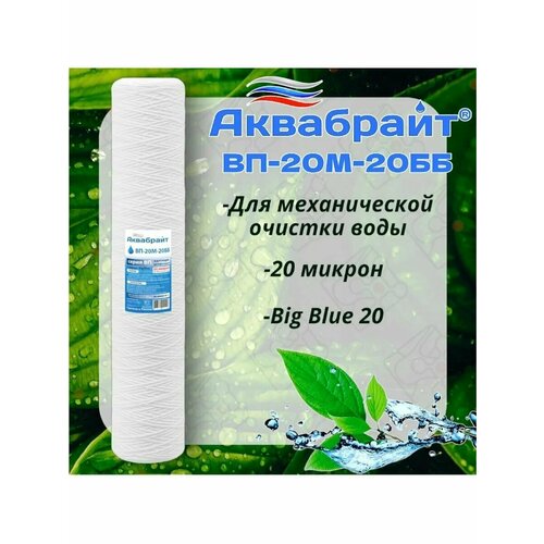 Картридж для механической очистки воды полипропиленовый аквабрайт ПП-20М-20ББ (2 шт.), для фильтра, Big Blue 20", 20 микрон
