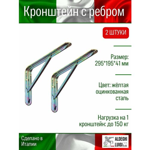 Кронштейн с ребром ALDEGHI LUIGI SpA 295х195х41 мм, оцинкованный, цвет: жёлтая оцинкованная сталь 150 кг, 2 шт, 2521AT30_P8_U2