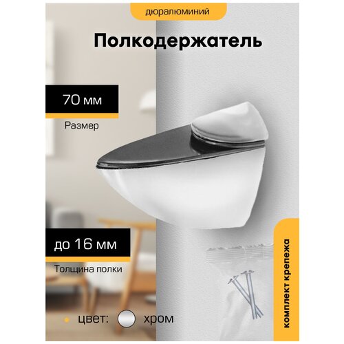 Главная Строительство и ремонт Крепеж и фурнитура Декоративные кронштейны Полкодержатель `чибис` Тукан-Б 70мм (хром матов.)