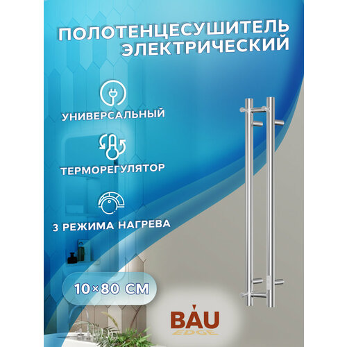 Полотенцесушитель дизайнерский электрический, BAU Stella 10х80, 2 коллектора, 1 крючок, нерж. сталь полированная
