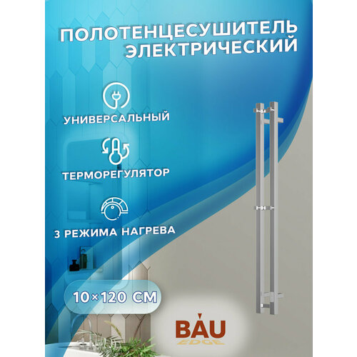 Полотенцесушитель дизайнерский электрический, профильный BAU Stella Square 10х120, 2 коллектора, 2 крючка, нерж. сталь полированная