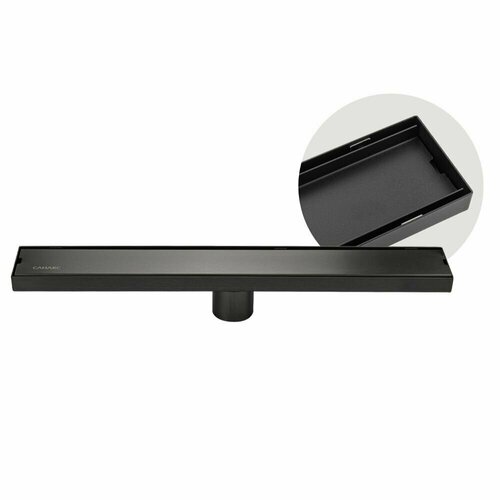 Трап 500х70 мм, нержавеющая сталь, линейный, вертикальный, крышка литая, цвет темно-серый, с сухим затвором
