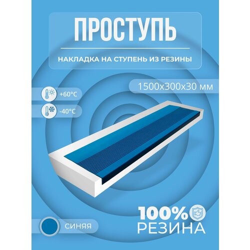 Цены на Противоскользящая накладка на ступень Длинная-max угловая (Проступь резиновая) 1500х300х30 синий в г. Воронеж