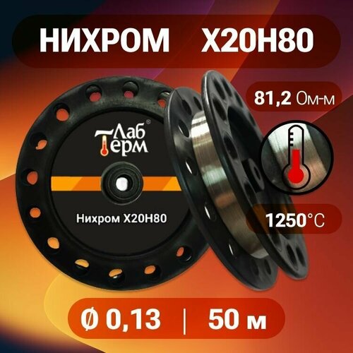 Проволока нихром 0,13 мм на катушке 50 м / х20н80 нихром / для нагревательных спиралей, резки пенопласта, ЧПУ выжигателей, нагревателей