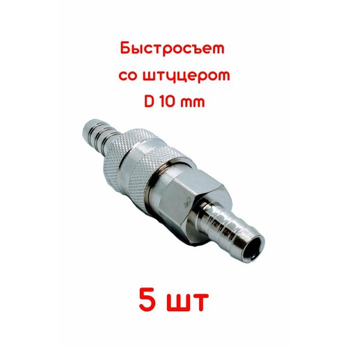Быстроразъемное пневматическое соединение/ Быстросъем со штуцером D-10 мм 5 штук/ БРС с клапаном/