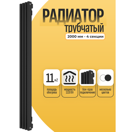 Радиатор отопления РАДИАРУС 30, стальной, трубчатый, черный, с боковым правым подключением, 2000 х 4 секции