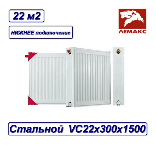 Радиатор отопления стальной, панельный, Лемакс (нижнее) 22х300х1500