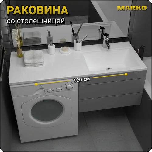 Раковина белая Марсал 120 прав. на стиральную машину 1200*482