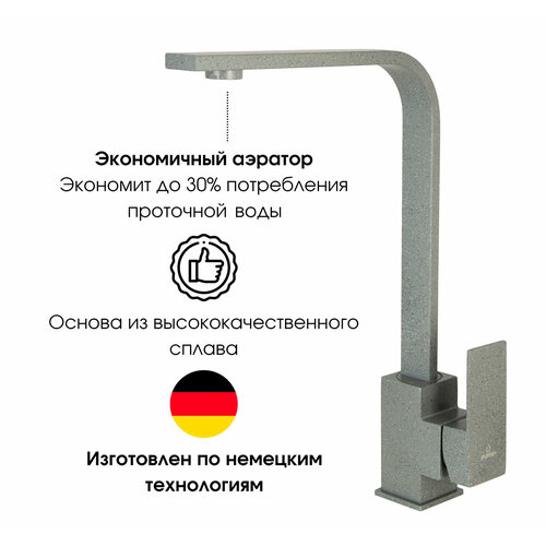 Смеситель для кухни, высокий, поворотный 360 градусов, однорычажный, квадратный, плоский, нержавеющая сталь, графит, мраморный