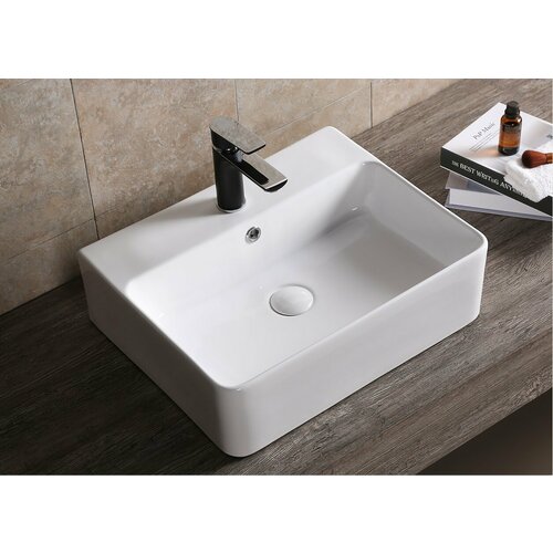 Раковина Cerutti SPA CR0094 накладная, белая, прямоугольная, с ответстием под смеситель 520х420х150