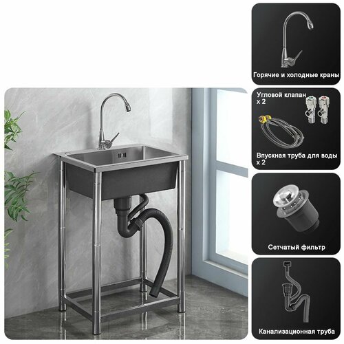 Умывальник, В Комплекте Подставка, Кран, впускная труба воды И Сливной Шланг, 50x40x75см