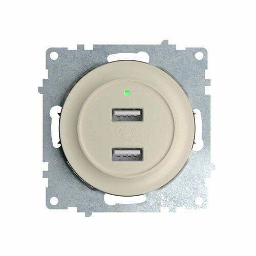 Розетка USB двойная OneKeyElectro, с подсветкой, цвет бежевый