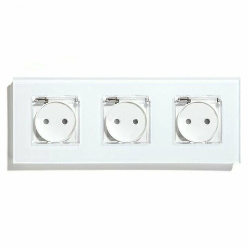 Розетка c крышкой, IP44 3 поста 16А, рамка 228х86 стекло