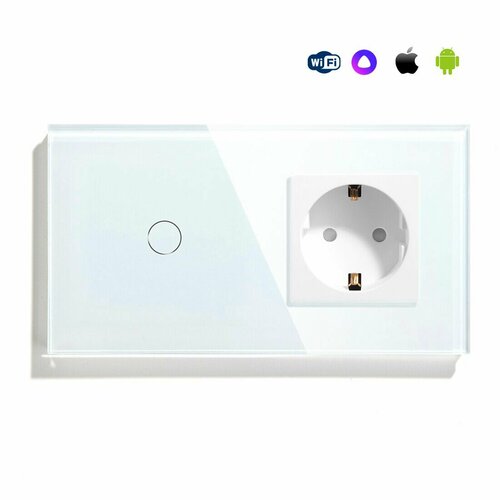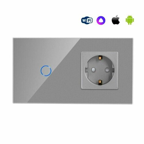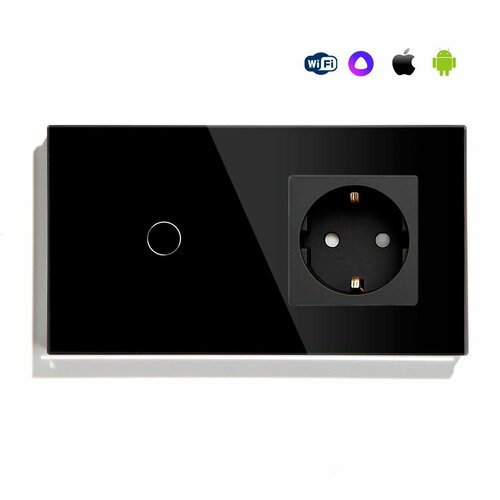 Сенсорный выключатель WiFi 1 клавиша 1 розетка 2 поста (1G+1EU) стекло 157х86мм