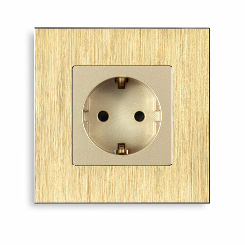 Розетка электрическая 1 пост 16А, рамка 86х86мм алюминий, цвет золотой