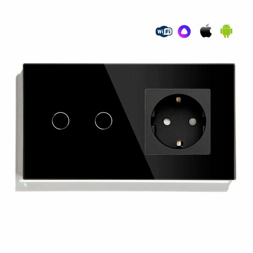 Сенсорный выключатель WiFi 2 клавиши 1 розетка 2 поста (2G+1EU) стекло 157х86мм
