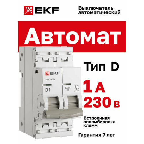 Автоматический выключатель EKF PROxima ВА 47-63N 2P 1А (D) 4,5 кА