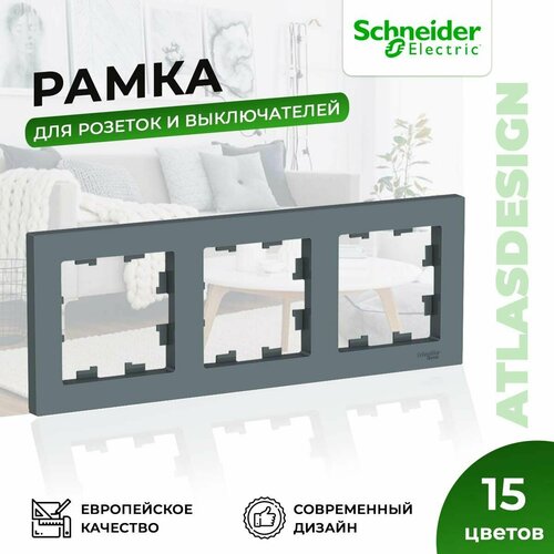 Рамка для розеток и выключателей Schneider Electric / Systeme Electric AtlasDesign на 3 поста универсальная, грифель
