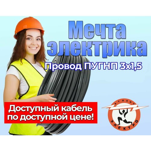 Кабель ПУГНП 3х1.5 "Мечта электрика" высококачественный гибкий кабель с изоляцией ПВХ