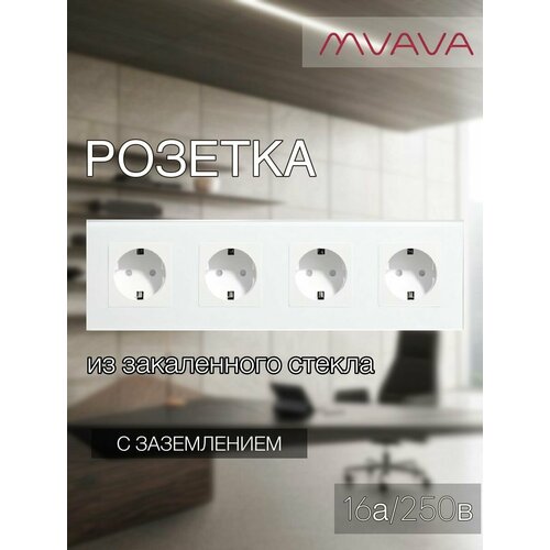 Розетка электрическая 4 поста 16А, рамка 299х86мм стекло